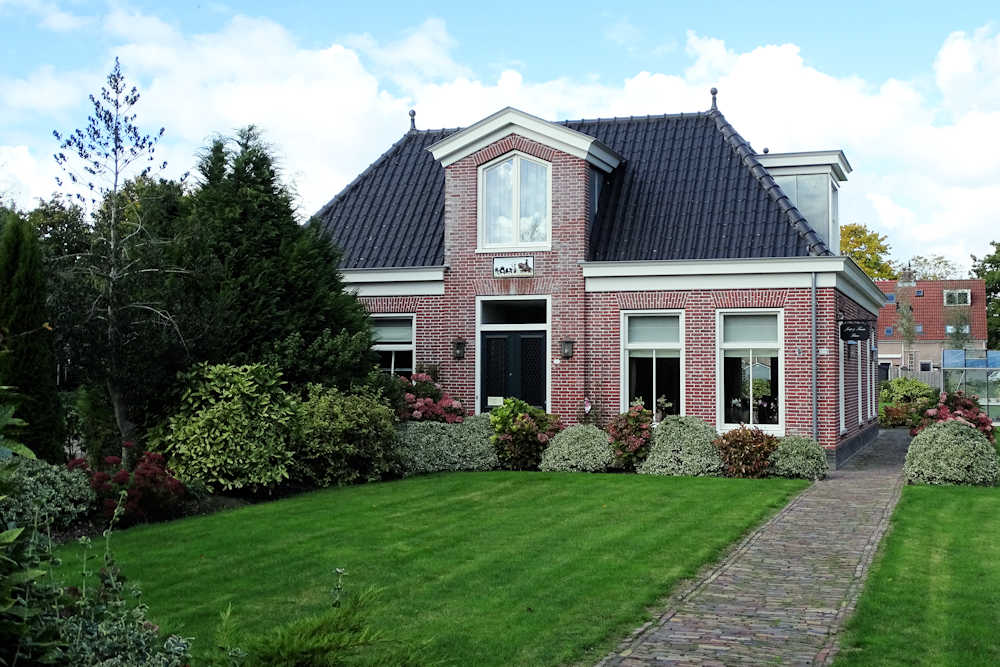 In de aan de weg gelegen gevel van de stolpboerderij Keern 217, is deze gevelsteen te zien met een landschap met bomen en daartussen een optisch vreemd gepositioneerde koe.